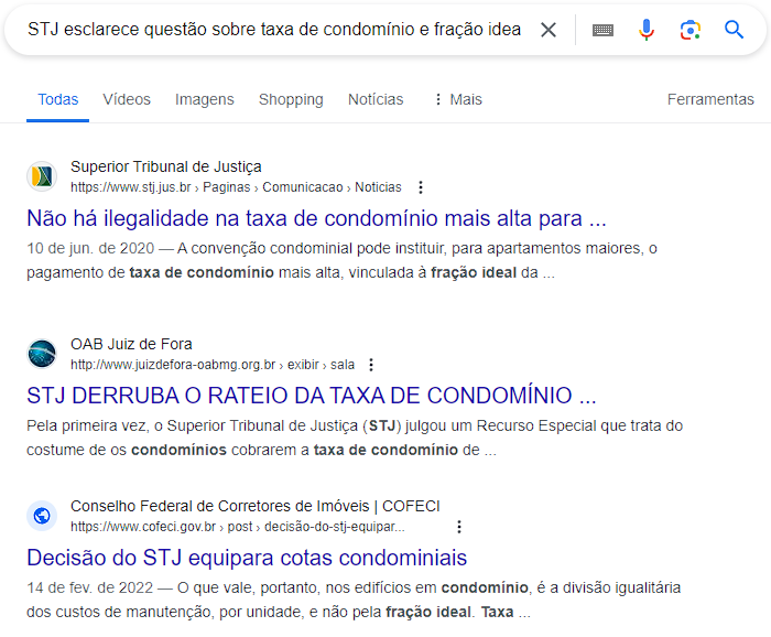 Fato curioso, quando se pesquisa pelo título deste artigo que você agora lê, o primeiro resultado do Google é a notícia do STJ que esclarece a decisão. O segundo resultado é a publicação que originou o imbróglio todo. E o terceiro resultado, a falsa notícia reproduzida pelo Conselho Federal de Corretores de Imóveis - COFECI, apenas uma das diversas entidades que a reproduziu.